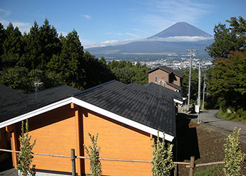 富士見山荘は、眼前に富士山を眺望する箱根山系の西斜面に位置するログハウス・ロッジです。